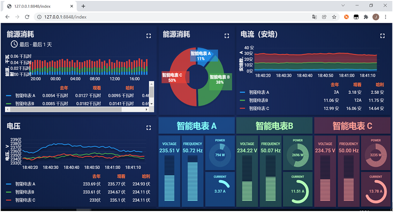 - 展示企业电、水、气、热、煤、新能源(光伏、储能)等各种能源数据;
